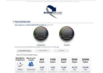 RapidShare è un sito di file hosting online per condividere e scaricare archivi di ogni genere. Permette l'upload dei file fino a 500 MB. Senza registrazione impone attese per il download ed alcune limitazioni. Alcuni dei servizi sono disponibili solo a pagamento